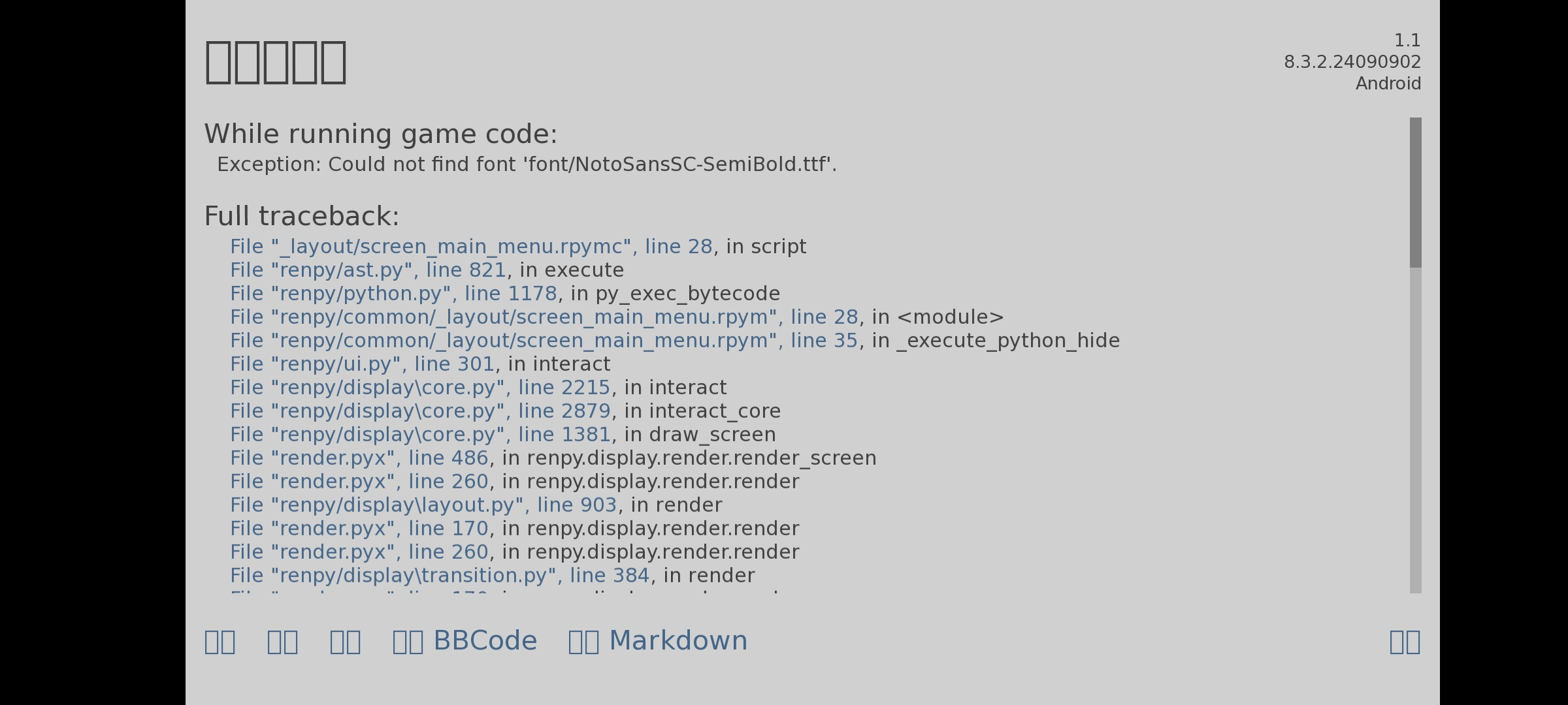 In the mobile version of the Chinese localization, I forgot to add the font, which causes a bug. I’ll definitely fix this soon for mobile devices, and then you’ll be able to play without issues. Right now, the bug only doesn’t occur in the PC version with Chinese language.