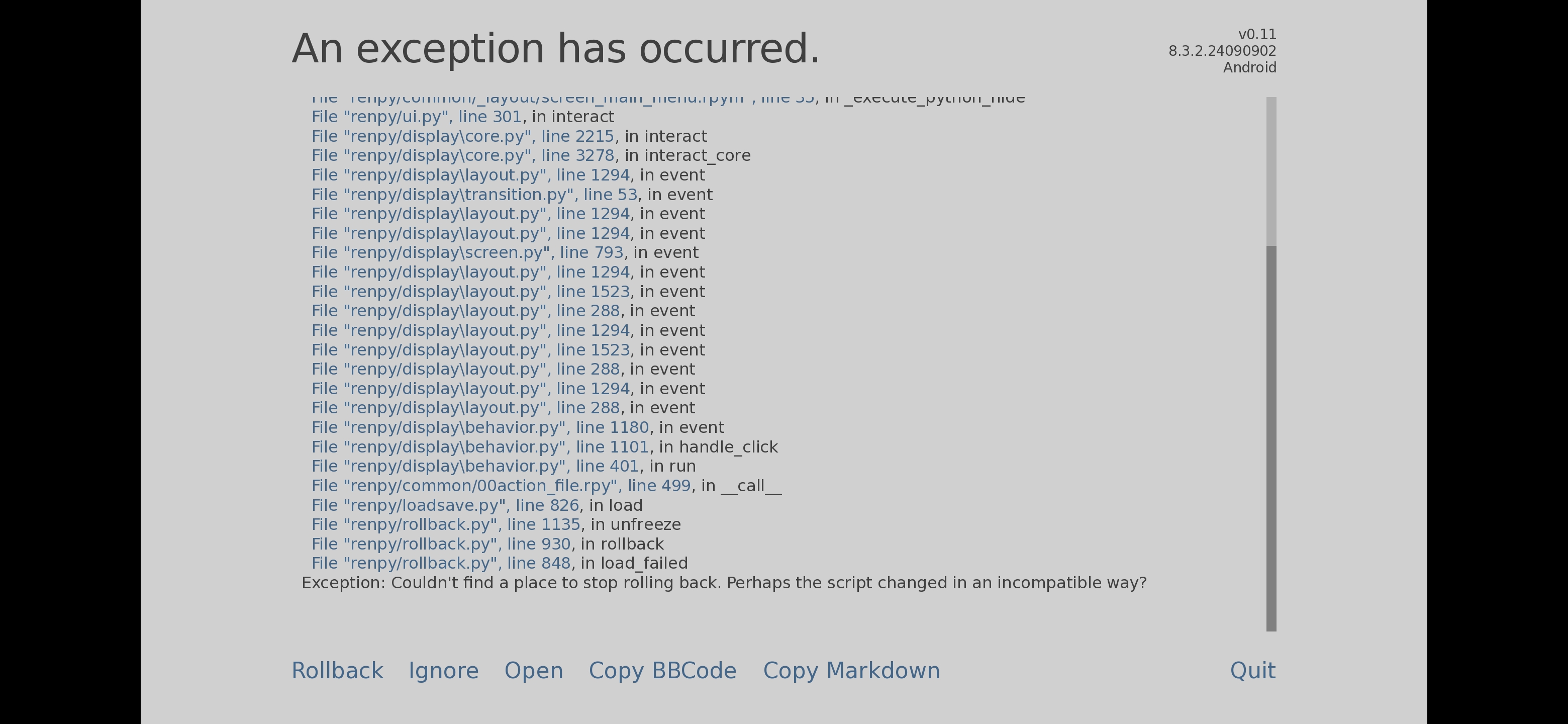 Having a similar error as the people below in English after updating to the newest version on Android. Is there a fix coming for this one as well? Thanks for the great series.